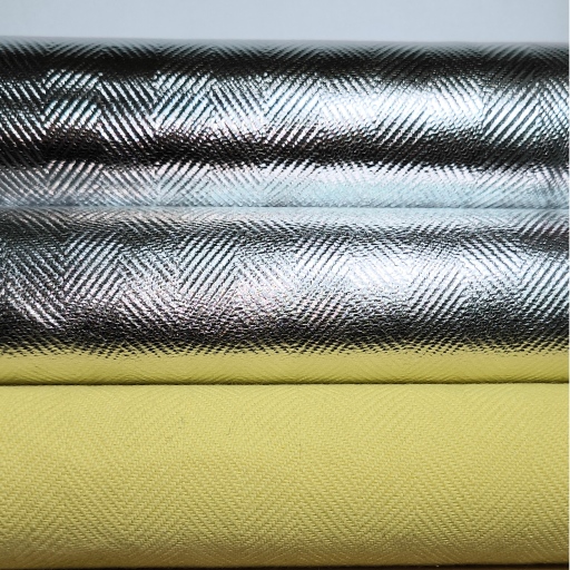The fabrics are used for PPE in the metallurgical industry. The materials are made of FR fibers such as aramid and oxidized. They are high brightness, good durability and softness through special coating Aluminium, and conform to the EN11612 standard.